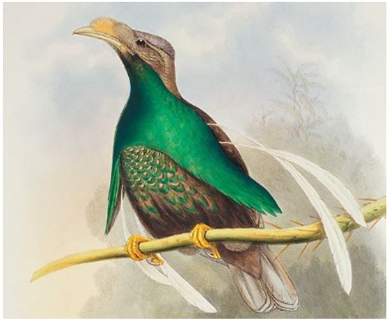 Hand-colored lithograph of Semioptera wallacii by John and Elizabeth Gould from John Gould’s The Birds of Australia. Trustees of the Natural History Museum, London.